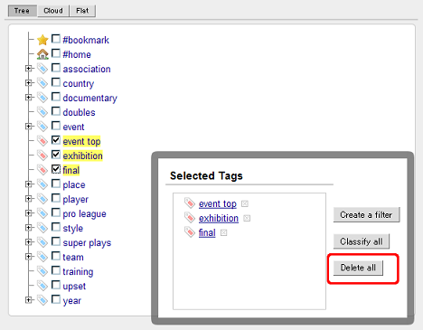 The tags page was updated to have a “Delete all” button to delete selected tags.