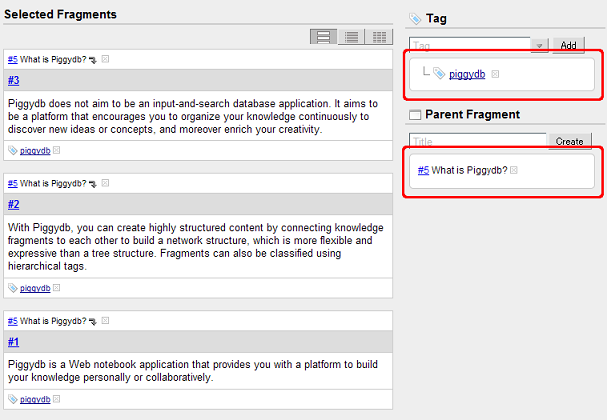 The fragment batch page was updated to show common tags and parent fragments of the selected fragments, and users can remove them by clicking the [x] buttons.