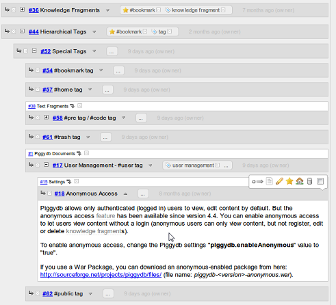 Piggydb is (intended to be) designed in such a way that it can be used without reading a manual. But since it is still an immature project, there are some features you may not know without instruction. Spacial Tags would be one of these features.