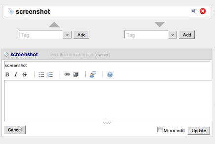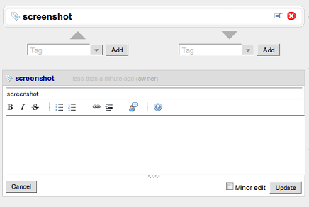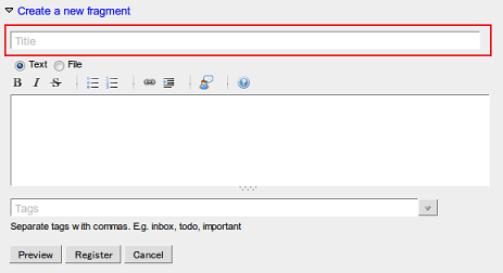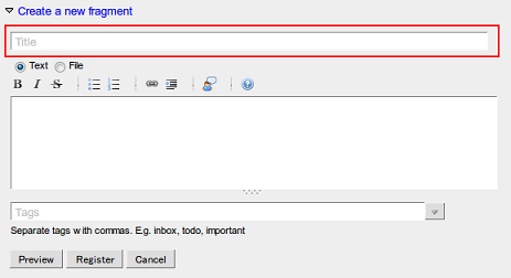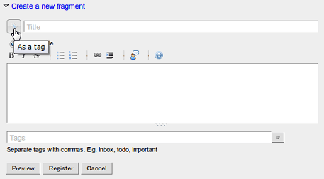 If you activate the “As a tag” toggle button when creating/updating a fragment, the fragment will be created/updated as a tag: