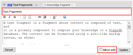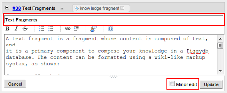 The Quick Edit feature has been updated to support editing a fragment title and a minor edit option as below: