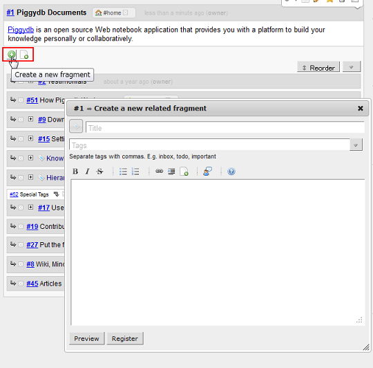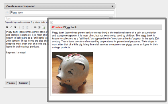 Piggydb V6.0-dev8 – New Editor for Related Fragments