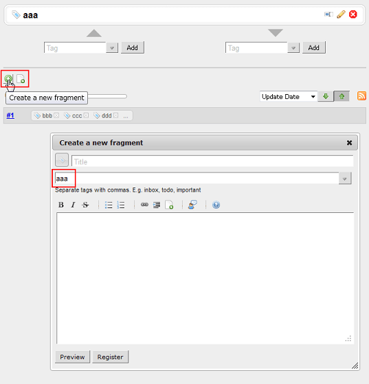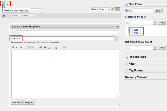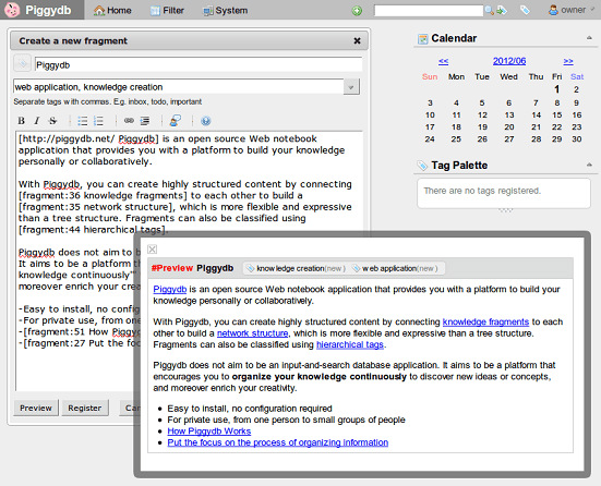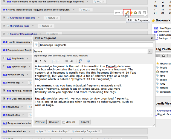 Piggydb V6.0-dev9 – New Editor in Tag and Filter Page