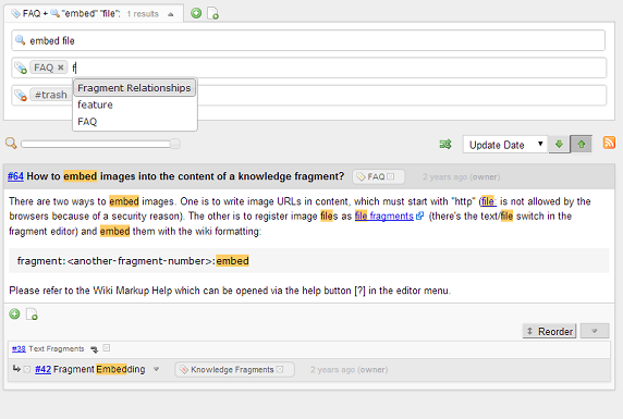 Posted: February 16, 2014 Filed under: uncategorized 6 CommentsFirstly, this release extends the fragment incremental search to support tags in addition to keywords. You can add tags for the list to include or exclude the fragments with the specified tags as follows: