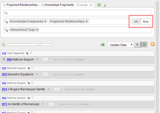 Posted: March 30, 2014 Filed under: uncategorized 3 CommentsThis release adds yet another update to the search feature by adding an All/Any switch to the tag search: