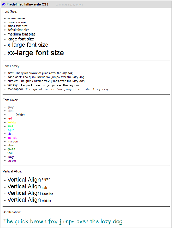 - monospace: {{[monospace] The quick brown fox jumps over the lazy dog}}