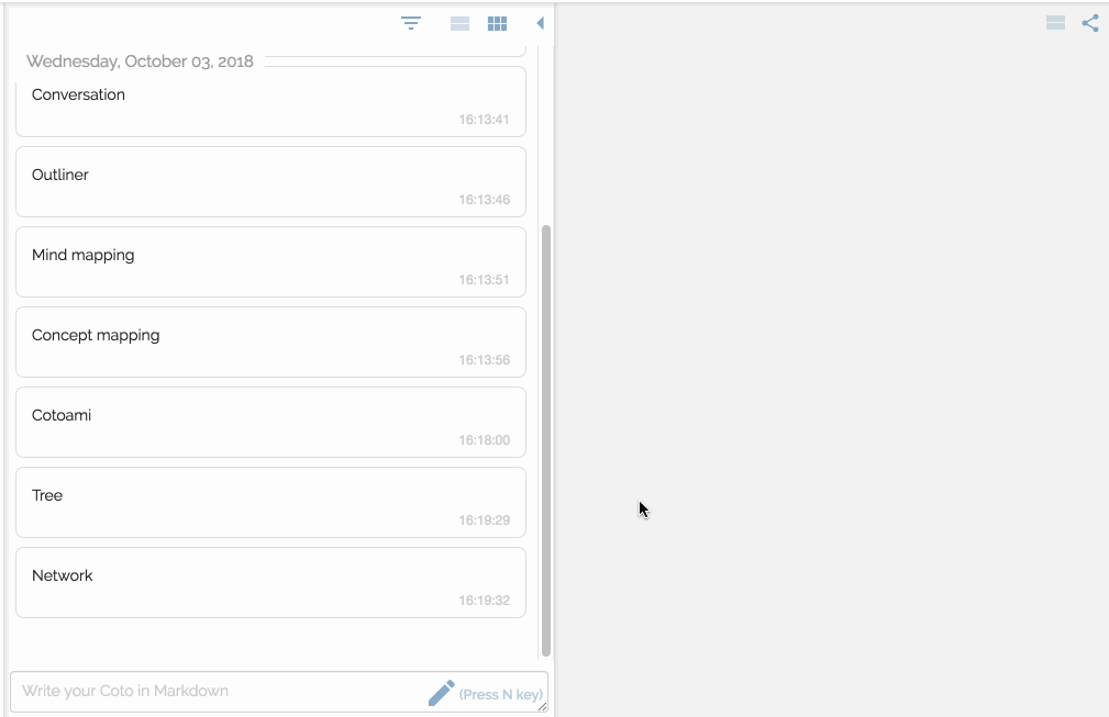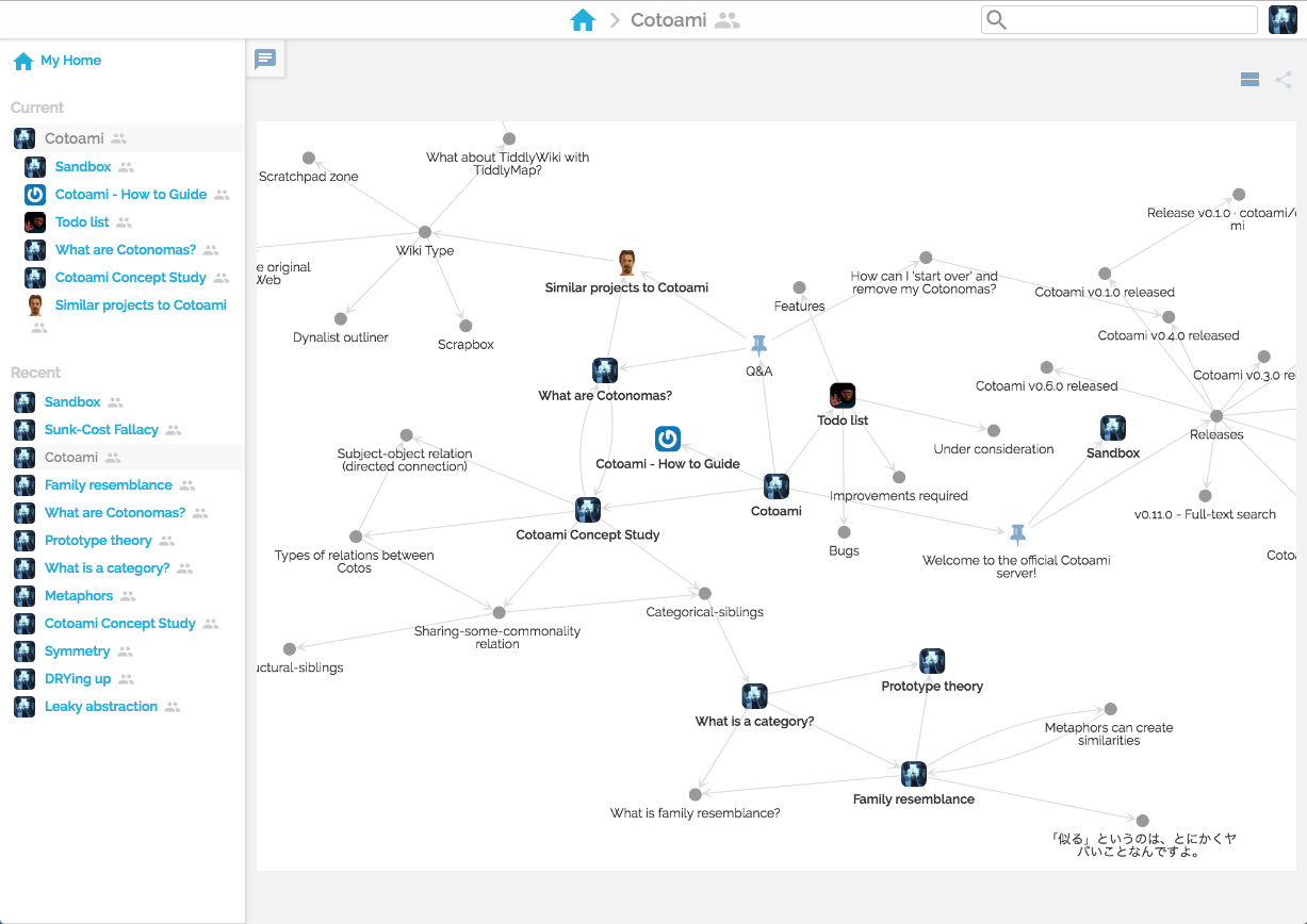 I’ve been using Cotoami for more than a year now and feel it works greatly. Many of my Cotonomas have been created spontaneously from my random thoughts or conversations with my friends and they are filled with new discoveries.