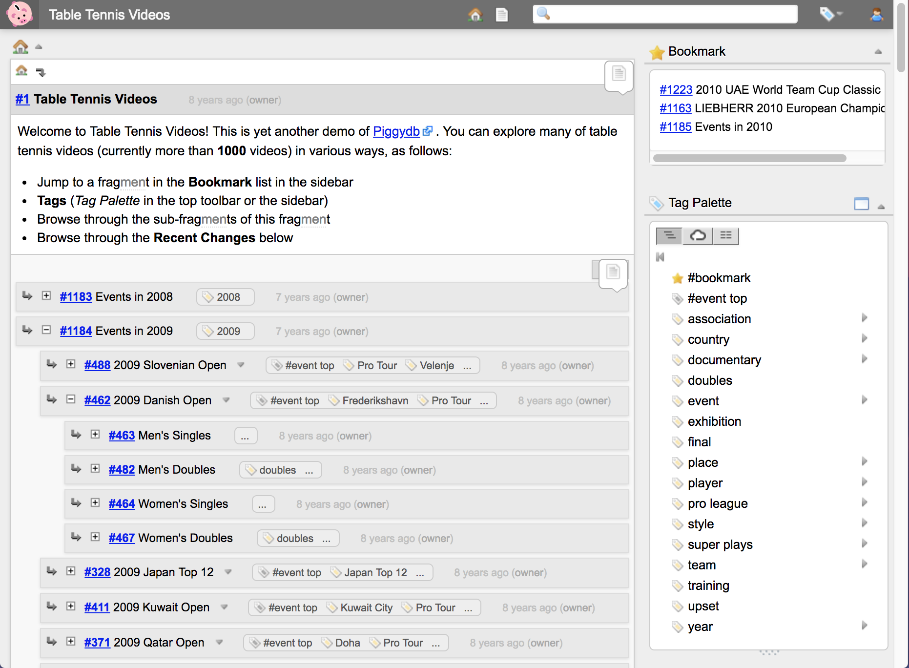 But as I experimented with Piggydb’s knowledge creation, I found out that it did not work as well as expected. I thought originally some sort of structure would gradually emerge in the continuous organization of knowledge fragments with tags. But there’s something missing still in Piggydb to achieve this goal. – Wiki, Mind maps, Concept maps and Piggydb | Piggydb